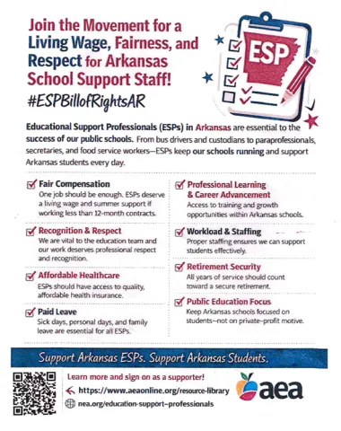 The Education Support Professionals (ESPs) in Arkansas are working together to pass and implement an ESP Bill of Rights. If you want to help, please sign on! Pledge Your Support for the NEA ESP Bill of Rights | NEA